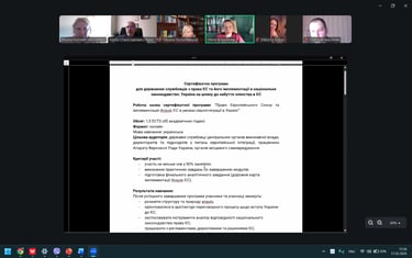 On February 26-28, 2026, a set of meeatings was held on the content of a certificate program for civil servants, developed under the guidance of Taras Shevchenko National University of Kyiv to improve their qualifications in European Union law, its system, structure, sources, implementation mechanisms, the specifics of Ukraine-EU interaction at the current stage, the status of the negotiation process, and the practice of transposing EU law into the national legal system of Ukraine