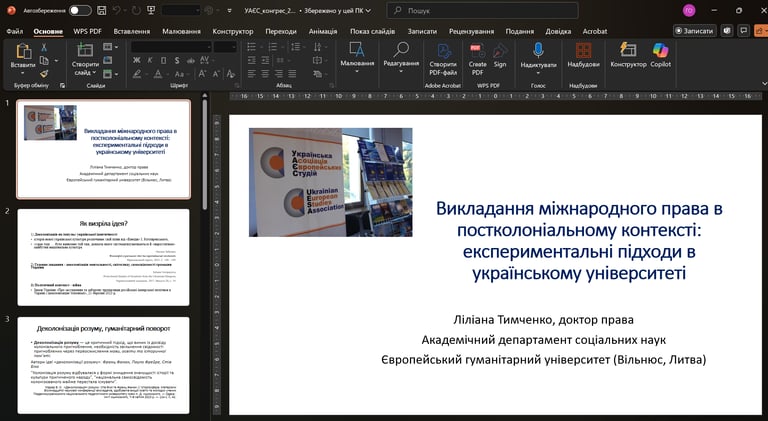 The session “Reforming Legal Education and European Integration of Ukraine” at the UESA 2025 Congress brought together Ukrainian and European scholars to discuss how legal education is evolving to respond to the challenges of EU integration and post-war recovery. Liliana Tymchenko (European Humanities University) opened the discussion with a presentation entitled “How to Teach International Law in Times of Colonial Legacy”, presenting experimental approaches to teaching that help students critically re-evaluate international law through the lens of decolonization. Mykhailo Mykievych (Ivan Franko National University of Lviv) explored ways to modernize the teaching of EU law, emphasizing that the updated curricula, which are the focus of the EU4UA project, are key to implementing Ukraine's European integration strategy and supporting future recovery efforts. Olga Sheredko (Ivan Franko National University of Lviv) discussed the protection of human rights in the EU as the basis for European legal culture and legal transformation in Ukraine.