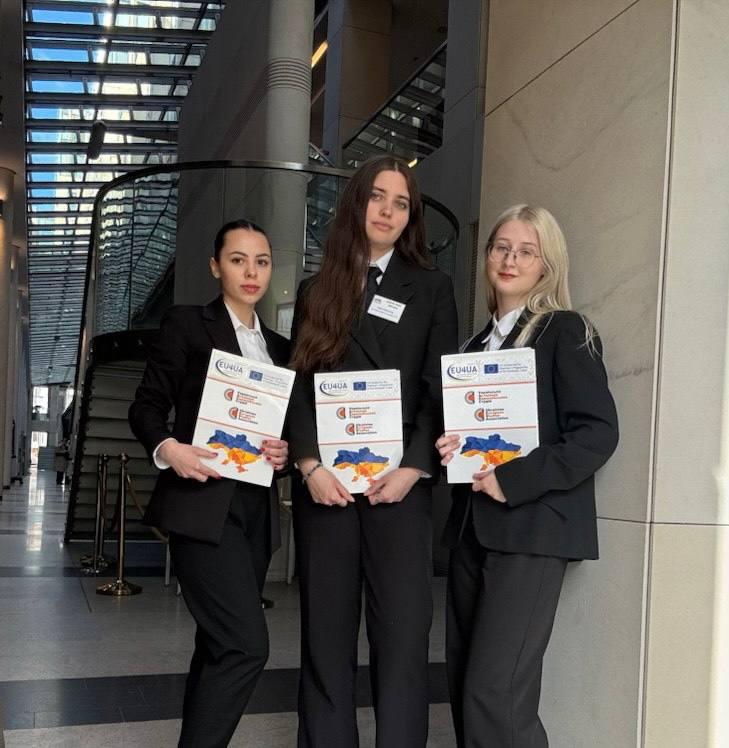 The team consisting of Tetiana Zhelekhovska, Anastasia Myglias (3rd year, Faculty of International Relations), and Diana Onishchak (4th year, Faculty of International) presented the legal position of the parties in a mock trial before a hypothetical international tribunal, which addressed iissues in international and European law. Thanks to the support of the team coaches Stepan Burak (assistant professor of the European Law Department) and Prof. Mykhailo Mykyievych (head of the European Law Department) the team developed and presented arguments on a complex case involving the effective remedies for protection of individual rights under the national law. Diana Onishchak received a special award in the individual competition and was awarded the title of “Noted Speaker,” which is a testament to her brilliant performance and high level of skill in court debates.